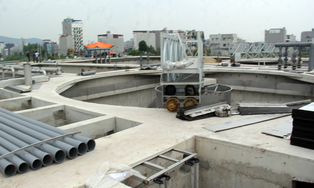 越韩工业园区的废水处理站已完成部分建设,准备安装技术设备。 |