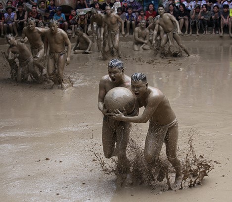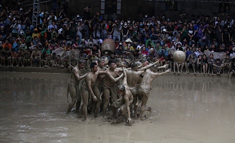 北江省越安县云村泥球摔跤节别具一格