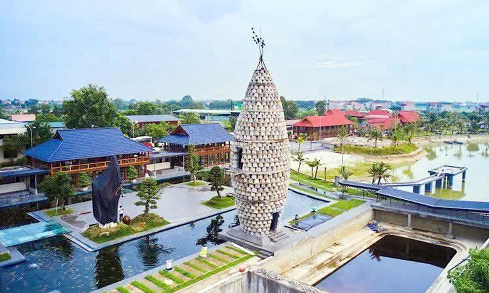 位于林涛乡的东都乡村生态旅游区(Đông Đô Village,林涛乡)以自然与文化的和谐融合给游客留下深刻印象。该景区占地逾2万平方米,古宅、砖铺庭院、鱼塘、槟榔树行、蒌叶棚、传统制饼区以及东胡画和扶浪陶器体验区等元素生动再现了越南北部乡村风貌。