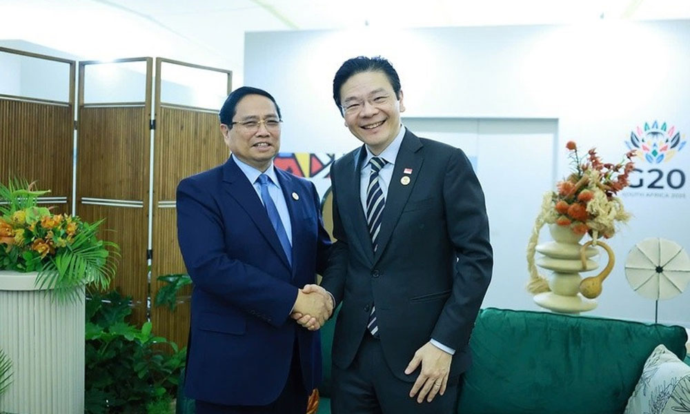 (北宁报网)在南非出席二十国集团(G20)领导人峰会期间,越南政府总理范明正当地时间23日上午分别会见了荷兰首相迪克·斯霍夫(Dick Schoof)和新加坡总理黄循财(Lawrence Wong)。