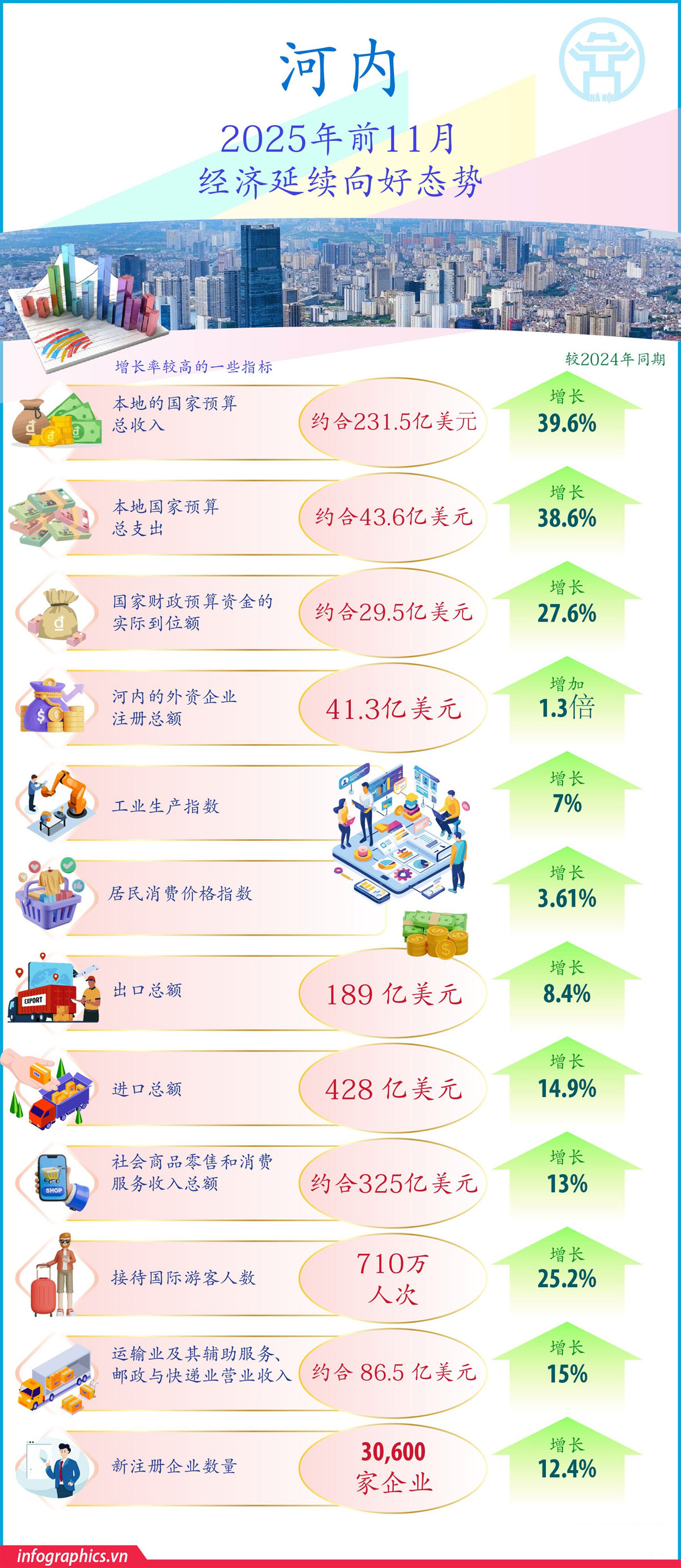 2025年前11月越南河内经济延续向好态势