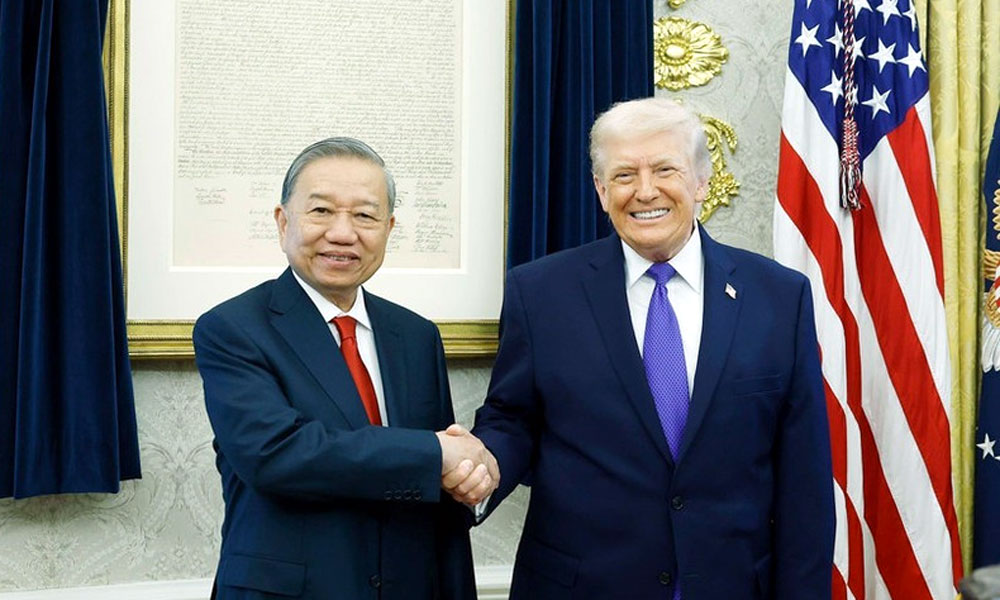 特朗普总统祝贺苏林总书记再次当选越共中央总书记,表示很高兴在白宫接待苏林总书记。
