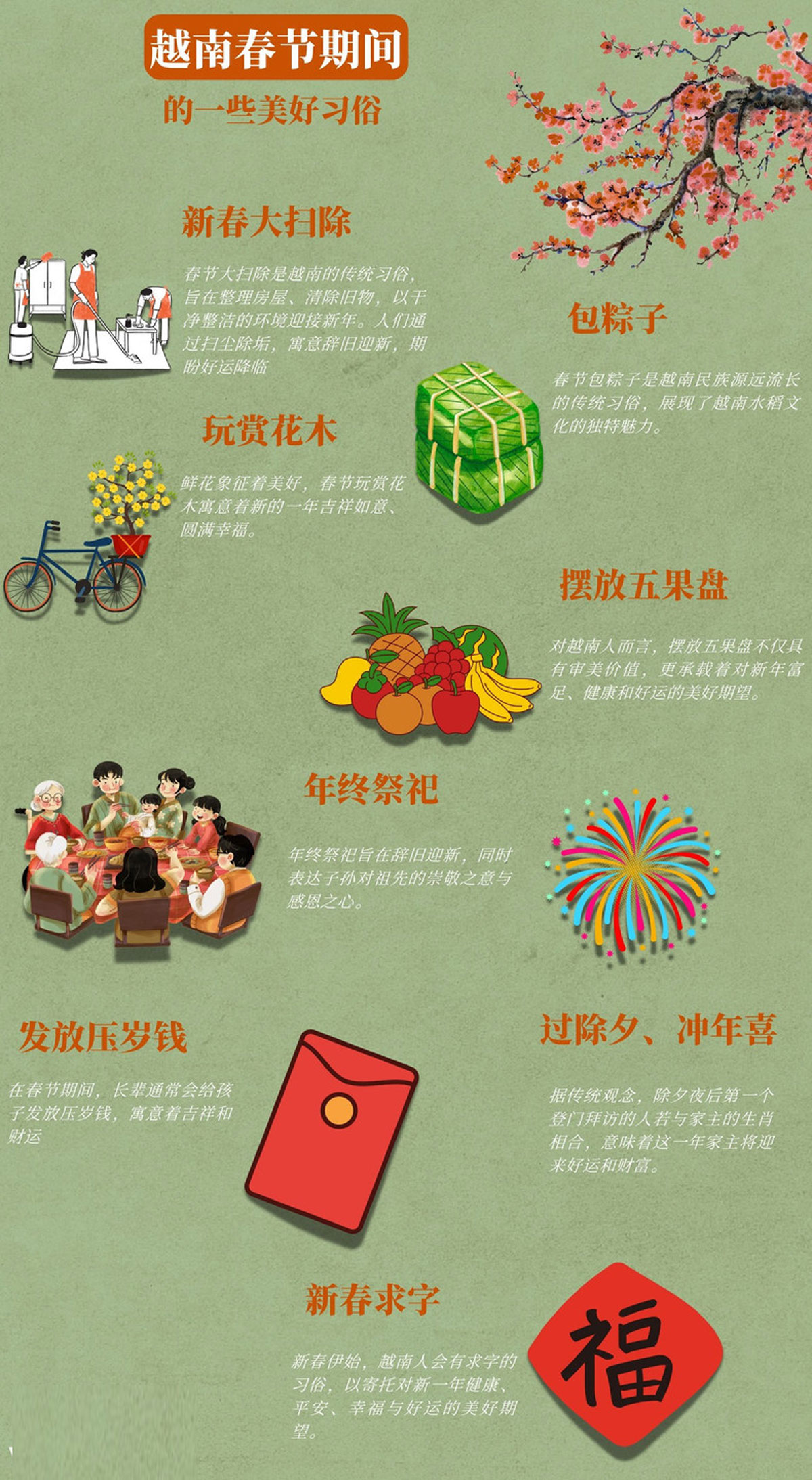 (北宁报网)越南人在传统春节中的习俗世代相传,至今仍保留着包粽子、春节大扫除、春节发放压岁钱等美好习俗。